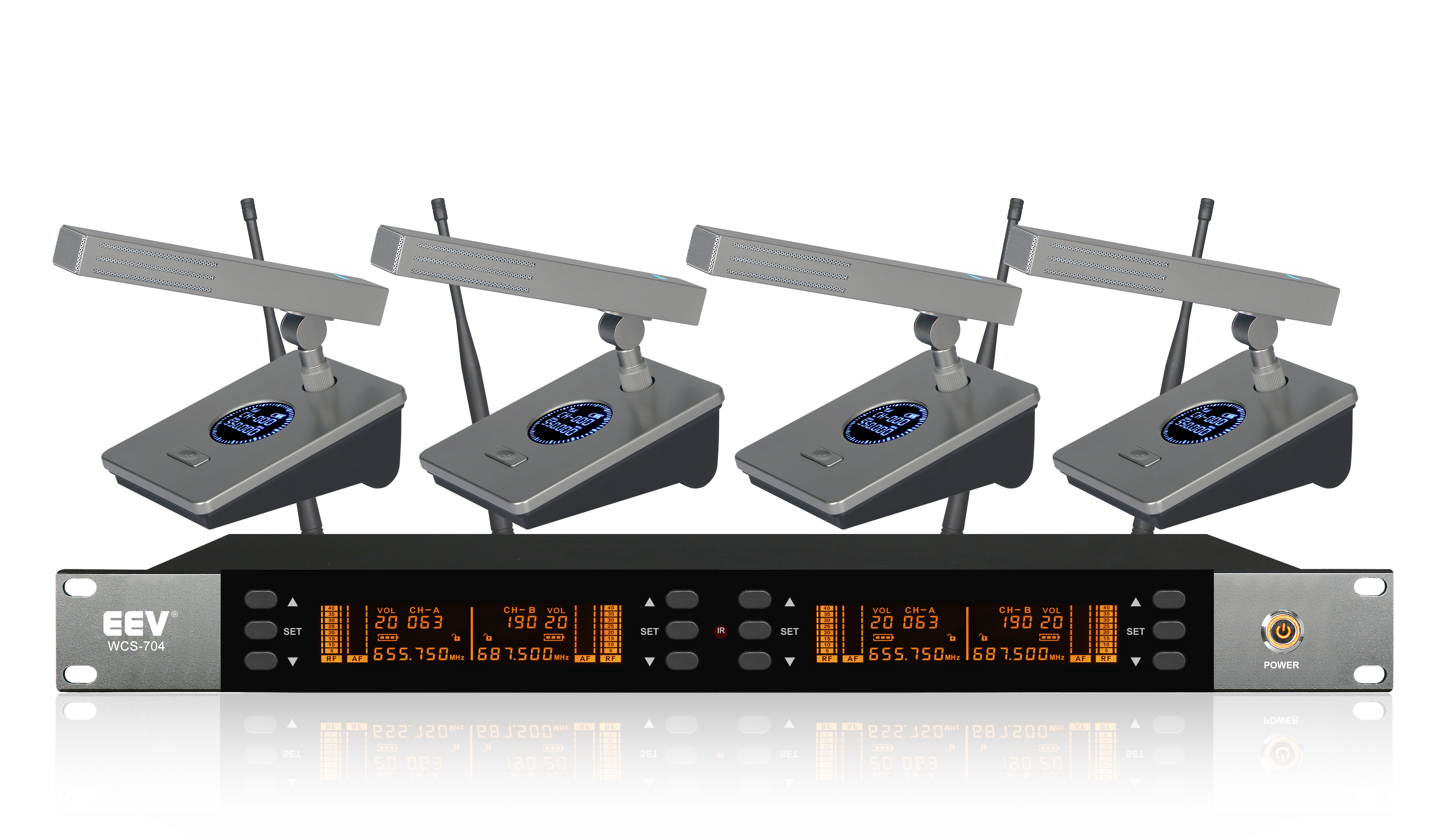 ● 尺寸(mm):接收器480mm(宽)×45mm(高)×260mm(长)、发射器(桌面会议式、手持式、腰包式)