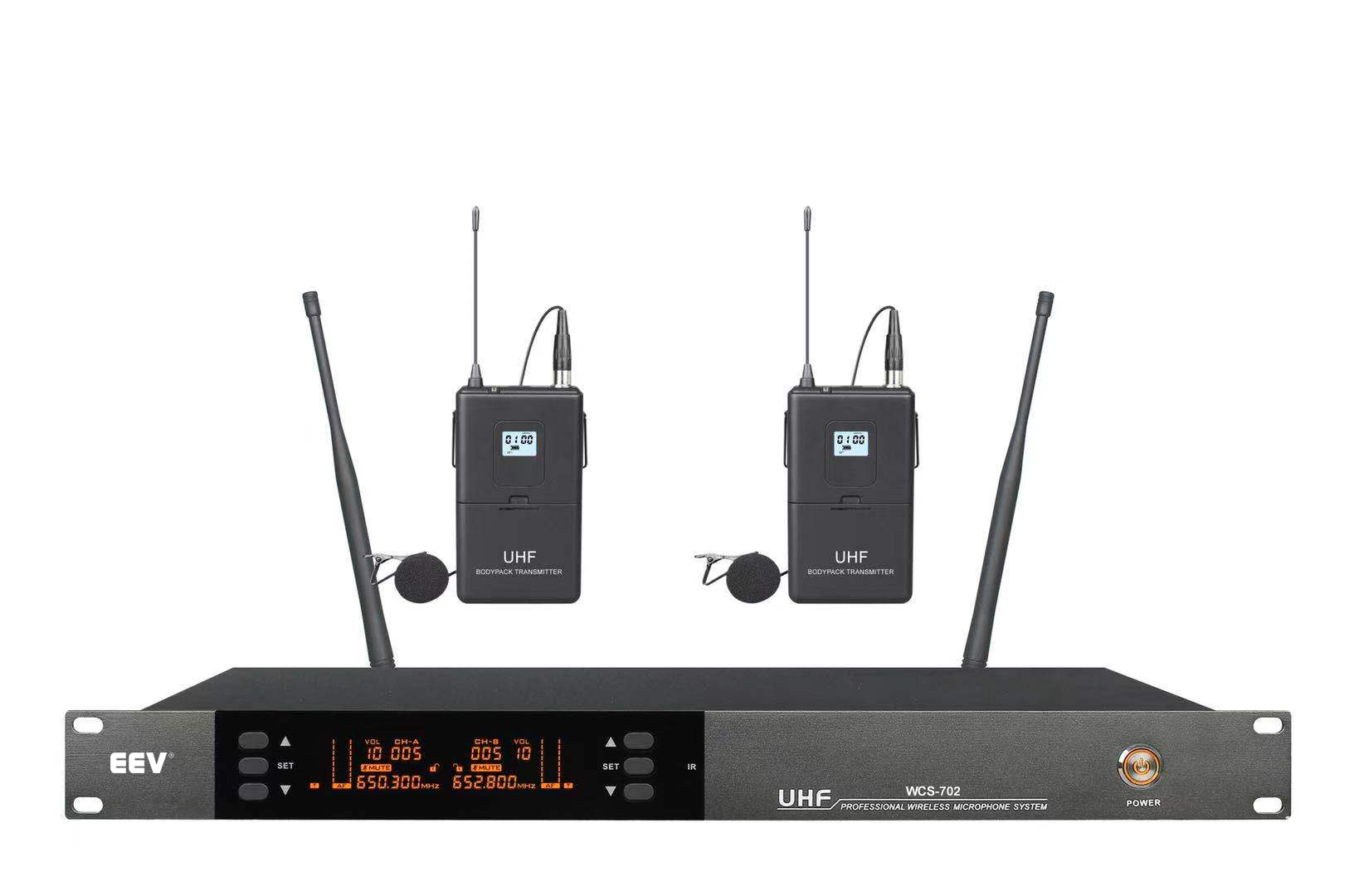 WCS-702双通道无线腰挂式麦克风 (领夹、头戴)